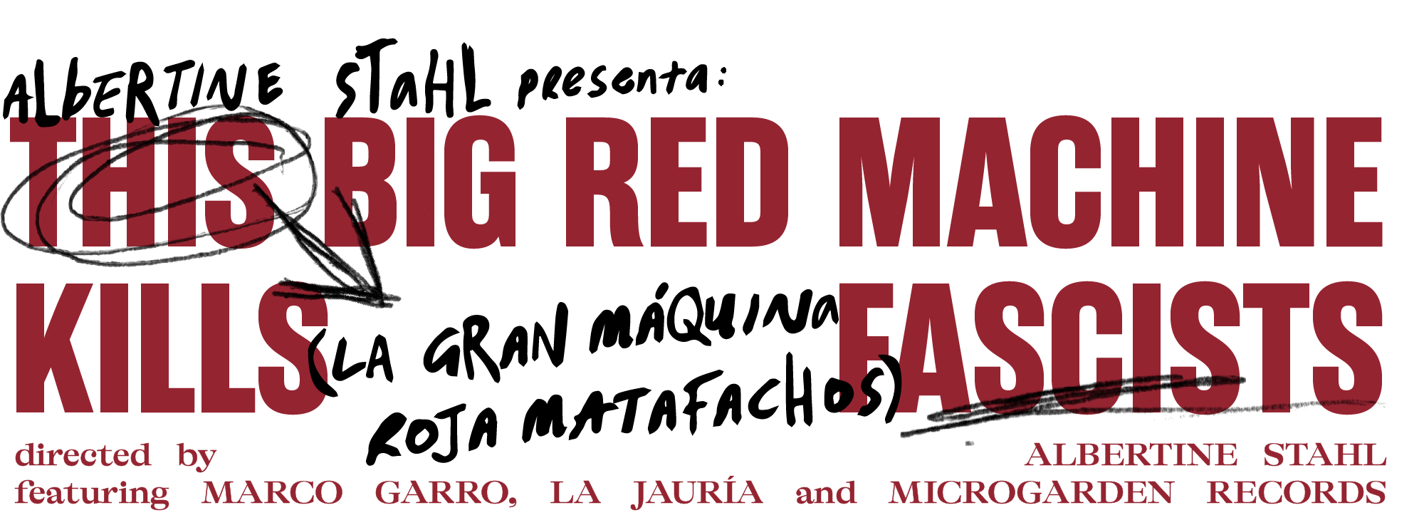 Arma de cinco filos, bestia de cuatro cabezas, hace de su canibalismo sobre unas ciertas arquitecturas, un acto crítico, un acto perfecto de arquitectura. Esta máquina se sirve de la arquitectura misma, del edificio “acabado”, como materia de trabajo. Más aún, devora y degusta a su propia estirpe. Vuelve la obra de su autor en su contra, al arrancarla del reino de la arquitectura para lanzarla al reino de las artes: el color que se vuelve palpable, el eco de lo cotidiano se vuelve sonido que transgresor, desde su carácter iconoclasta aflora la historia política, desde las artes visuales y de indumentaria, lo irreverente. El matar fascistas, como lo puede ser el matar amantes del arte conservador, es una broma que se toma con toda seriedad. Esta Gran máquina roja, como una hidra monstruosa, posee más de una cabeza: la de la artista Albertine Stahl, su cabeza original; sus cabezas sonoras, Microgarden Records y La Jauría, de las que no cesan de emanar ruidos infernales; y la del diseñador Marco Garro, que cobija y viste a los cuerpos que emanan de este averno a escala.